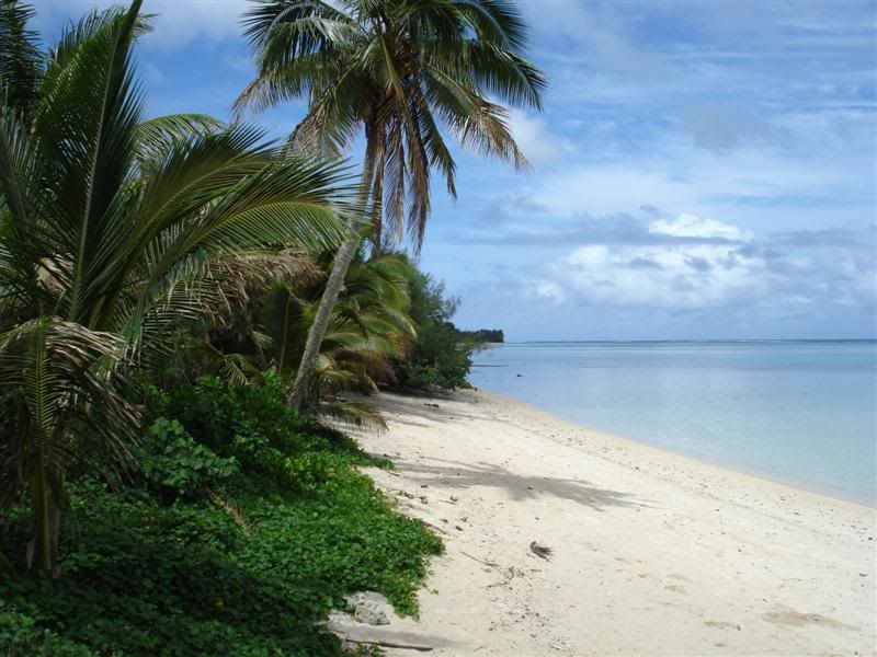Vi skulle bo hos Vara's Beachhouse, som laa helt perfekt ned til vandet (saa igen, stort set alt er lige ned til vandet). Da vi ankom viste det sig at vi var blevet opgraderet til en Bungalow, da de var helt booket. Det betoed saa at vi fik vores egen lille hytte, hvilket bestemt ogsaa var fint, den laa saa bare lige et lille stykke vaek fra stranden. Man kunne saa foranlediges til at tro, at naar nu det laa trukket lidt tilbage ville gevinsten vaere ekstra ro, MEN NEJ! Det baade Michael og jeg nok vil huske Rarotonga mest for, var den infernalske larm af gjaldende haner. De begyndte godt og vel ved kl. 02.00, og fortsatte saa til 16.00, hvor hundene saa kunne overtage ved at goe, pive, tude deres klagesang >.< Til gengaeld havde vi ogsaa faaet os noget af en udsigt, fra tearessen: